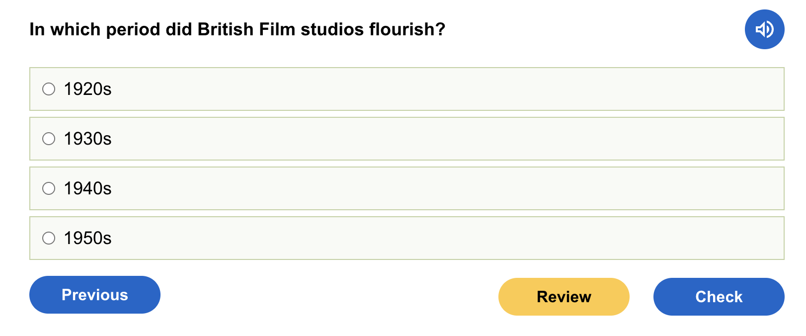 6. In which period did British Film studios flourish? (There is apparently an objective answer, not subjective taste.)